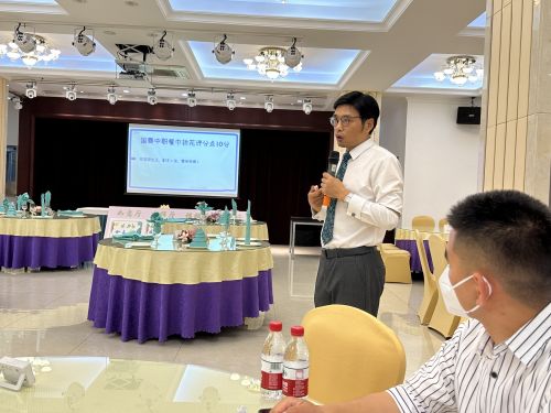 研討后,來自大連商業(yè)學(xué)校的唐為成老師為大家解讀了餐飲服務(wù)賽項(xiàng)國(guó)賽、世賽的比賽規(guī)則、注意事項(xiàng)和備賽要點(diǎn),并分享了賽課融合的教學(xué)經(jīng)驗(yàn)。