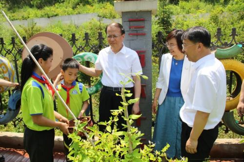 上午,調(diào)研組來到龍王塘小學(xué)的操場,在范立霞校長的陪同下,觀看了大課間體育藝術(shù)活動(dòng)展示,大課間作為龍王塘中心小學(xué)特色課程項(xiàng)目,是藝體課程的重要組成部分。同學(xué)們精湛的排球技能和饒有韻味的戲曲韻律操展示,贏得了調(diào)研組專家的高度贊揚(yáng)。省教育廳副廳長孔峰評價(jià)說,這是日積月累的真功夫,是學(xué)校扎實(shí)開展體育藝術(shù)教學(xué)的最佳表現(xiàn),是有思想和情懷的校長引領(lǐng),才能練就的成果,學(xué)校要繼續(xù)提升學(xué)校藝體教師專業(yè)能力,堅(jiān)持抓好學(xué)校體育藝術(shù)工作,為更多有體育愛好的學(xué)生提供專業(yè)指導(dǎo),為體育藝術(shù)教育目標(biāo)的落實(shí)提供學(xué)校智慧。隨后,調(diào)研組來到學(xué)校各勞動(dòng)場域。這里是學(xué)生開展自主生產(chǎn)勞動(dòng)研究的實(shí)踐場所:本草園、心耕園、子耘園一排排綠油油的菜苗生機(jī)勃勃;蔓藤廊一縷縷茁壯的枝葉攀緣而上;龍門山一項(xiàng)項(xiàng)跨學(xué)科融合作業(yè)盡顯特色;樂善堂一味味中草藥散發(fā)著傳統(tǒng)底蘊(yùn)的芳香。孩子們動(dòng)手實(shí)踐、親身體驗(yàn),不怕日曬、出力流汗,感悟勞動(dòng)的偉大、崇高、美麗與光榮。孔峰副廳長說:這才是學(xué)校該有的樣子。鞠振偉局長躬身查看小苗長勢,摸著學(xué)生的頭親切地詢問采摘金銀花的方法,以及勞動(dòng)的收獲體會。鞠振偉局長寄語說,希望同學(xué)們從勞動(dòng)中感受到農(nóng)作的艱辛和農(nóng)民的不易,從小養(yǎng)成熱愛勞動(dòng)、珍愛糧食、尊重自然的良好習(xí)慣。調(diào)研組專家走進(jìn)青花閣陶藝展廳和陶藝課堂,與教師和學(xué)生熱情互動(dòng),一件件帶著學(xué)校標(biāo)識的陶藝作品光澤亮麗。陶藝課堂是龍王塘中心小學(xué)藝術(shù)課程之一,學(xué)校堅(jiān)持多元發(fā)展的課程理念,開設(shè)了陶藝、鼓韻、排簫、書法、戲曲、科技、健美操等二十余門特色校本課程。鞠振偉局長指出,藝術(shù)教學(xué)是美育的重要組成部分,是學(xué)生全面發(fā)展的重要一環(huán)。基礎(chǔ)教育應(yīng)當(dāng)在保證安全的前提下,通過豐富的藝體活動(dòng),助力學(xué)生德智體美勞全面發(fā)展。