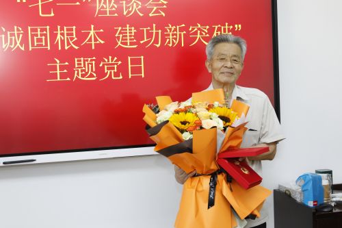 活動中,高凱副書記為兩位老黨員頒發(fā)了“光榮在黨五十年”紀(jì)念章,并對為學(xué)院事業(yè)發(fā)展和離退休老干部工作做出重要貢獻(xiàn)的老黨員們表示衷心的感謝和節(jié)日祝賀,他鼓勵離退休老干部、老黨員不忘初心、牢記使命,終身為黨,發(fā)揮余熱,為學(xué)院發(fā)展貢獻(xiàn)力量。