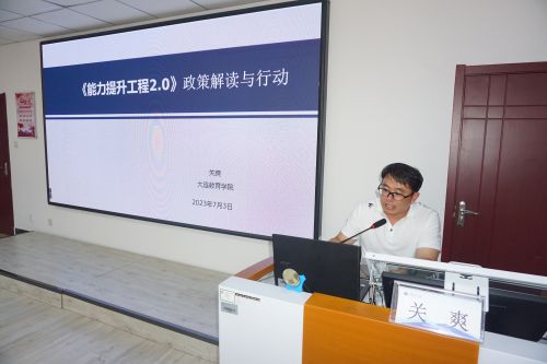 為加快貫徹落實(shí)《教育部關(guān)于實(shí)施全國中小學(xué)教師信息技術(shù)應(yīng)用能力提升工程2.0的意見》,盡快完成我市中小學(xué)教師信息技術(shù)應(yīng)用能力提升工作,提高我市中小學(xué)教師信息化教學(xué)能力。7月3日,學(xué)院教師辦組織召開局直學(xué)校中小學(xué)教師信息技術(shù)應(yīng)用能力提升2.0推進(jìn)會。市教育局機(jī)關(guān)黨辦許黎明副主任、賈艷莉老師,學(xué)院教師辦劉金華主任及來自各局直學(xué)校的50余名副校長、培訓(xùn)主任、信息技術(shù)教師參加了本次會議。會議由教師辦關(guān)爽副主任主持。