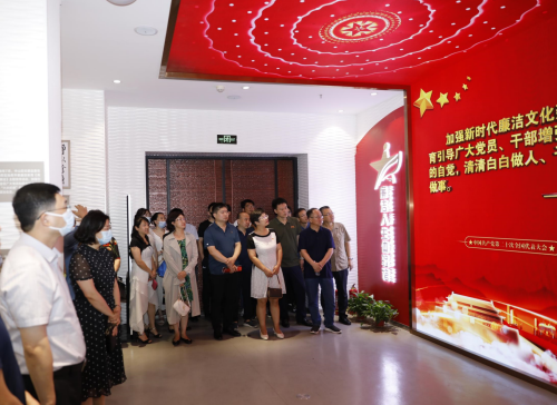 在講解員的引導(dǎo)下,黨員干部們依次參觀了廉潔文化廣場、“廉潔人生”教育展廳和“清風(fēng)站”書屋三個部分,認(rèn)真聆聽講解。在家風(fēng)家教展廳,通過“系好人生第一扣”“邁好理想第一步”“上好廉政第一課”展區(qū)接受孝愛美德的洗禮;在黨史教育展廳,通過觸摸石墨烯魔法墻重溫百年黨史,汲取奮進(jìn)力量,筑牢理想信念;在警示教育展廳,穿過“警示之門”感受“人生八大關(guān)”場景的“誘惑考驗”,警醒教育黨員干部以案為鑒,警鐘長鳴,筑牢拒腐防變的思想道德防線。