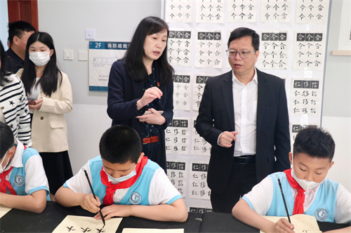 校長們在工作室主持人王艷校長的帶領(lǐng)下,走進(jìn)了學(xué)生的課堂,觀看了書法課、國畫課、手風(fēng)琴課,聆聽了合唱隊的天籟之音,參觀了計算機室、圖書館和我校的黨建陣地。陳校長工作室成員對我校的設(shè)施設(shè)備、課程建設(shè)、學(xué)生的學(xué)習(xí)環(huán)境以及合唱隊、黨建陣地小講解員精彩的呈現(xiàn)連連稱贊。