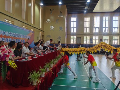 鞠振偉局長在開幕式致辭中對(duì)在剛剛結(jié)束的遼寧省第九屆體育教師基本功大賽中奪取冠軍的大連代表隊(duì)表示祝賀!對(duì)我市近年來校園足球發(fā)展取得的成績給予充分肯定!并希望我市體育教師借大連成功申辦2024年國際中體聯(lián)青少年足球世界杯的東風(fēng),大展宏圖,為大連體育事業(yè)做出新的貢獻(xiàn)!最后他為象征著大連體育騰飛的金龍點(diǎn)睛,表達(dá)對(duì)大連中小學(xué)體育工作的美好祝愿。
