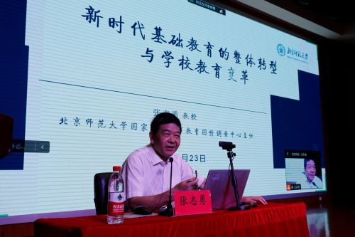 本次培訓(xùn)邀請(qǐng)北京師范大學(xué)國(guó)家高端智庫(kù)教育國(guó)情調(diào)查中心主任張志勇教授做專題講座。張志勇教授圍繞“新時(shí)代基礎(chǔ)教育的整體轉(zhuǎn)型與學(xué)校教育變革”主題從新時(shí)代基礎(chǔ)教育整體轉(zhuǎn)型的時(shí)代要求、方法論、戰(zhàn)略任務(wù)和學(xué)校實(shí)踐四個(gè)方面進(jìn)行了深入系統(tǒng)的闡述。