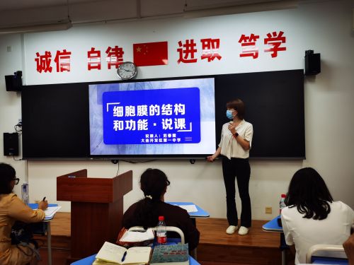 本次活動的主題是“雙新背景下指向深度學(xué)習的單元教學(xué)范式建構(gòu)”,圍繞這一主題此次研訓(xùn)活動主要包括三項內(nèi)容。第一項內(nèi)容是省青年教師基本功大賽獲獎選手比賽體會和說課環(huán)節(jié)分享,首先由大連市第二中學(xué)的黃佳慧老師以“遇見成長,靜待花開”為題交流比賽心得體會,黃老師從扎實理論學(xué)識,提升專業(yè)素養(yǎng);加強實驗設(shè)計,筑牢學(xué)科特色;完善理論支撐,提高教學(xué)能力;錘煉基本功底,盡展青年芳華四個方面展開分享。然后大連開發(fā)區(qū)第一中學(xué)的范春霞老師從教學(xué)分析、教學(xué)策略、教學(xué)過程和教學(xué)反思四部分進行《細胞膜的結(jié)構(gòu)和功能》說課,兩位教師學(xué)有思,賽有感,詮釋青年人的奮斗與擔當。