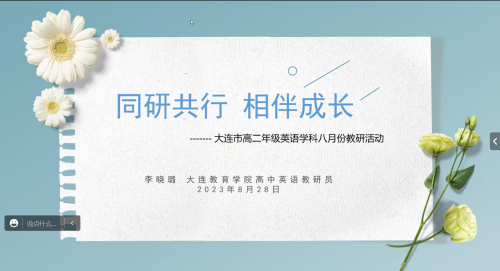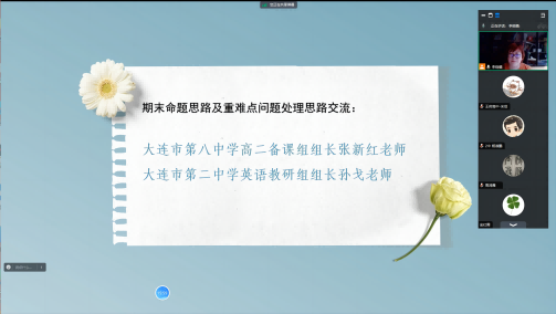 8月28日,大連市高二年級英語線上教研活動(dòng)成功舉辦。本次教研由大連教育學(xué)院李曉璐老師主持,全體高二年級教師積極參與,從高一下學(xué)期期末考試分析、精品課錄制分享、本學(xué)期教學(xué)計(jì)劃等幾個(gè)方面進(jìn)行了資源共享和深入研討。
