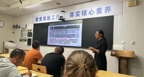 張曄老師對于高二上學(xué)期的教學(xué)給出了建議。首先,采用大單元教學(xué)的方法,對單元知識進(jìn)行整合;其次,各備課組要重視集體備課,通過集體備課分工合作,解決復(fù)雜問題;最后,在課程設(shè)計(jì)上,要注重情境的運(yùn)用,提出有吸引力有深度的問題。張曄老師還介紹了基礎(chǔ)教育精品課錄制的相關(guān)要求,對老師們在選擇課節(jié),如何設(shè)計(jì)授課內(nèi)容,以及如何錄制等方面給出了建議。