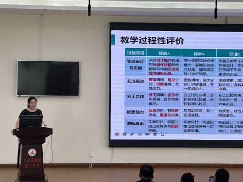 會議第三部分,李娟老師圍繞大單元教學實施中的評價問題對化學中心組進行了重點的培訓,同時布置了相關實踐工作。