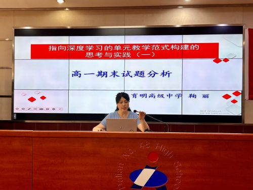 活動中,大連市育明高級中學(xué)鞠麗老師以對深入學(xué)習(xí)的認(rèn)知為引,闡釋了上學(xué)期期末考試的有關(guān)命題特征,以布魯姆教育目標(biāo)分類法為依托,從記憶、理解、應(yīng)用、分析、評價、創(chuàng)新六個維度詳細(xì)的分析期末試卷內(nèi)容,并結(jié)合教學(xué)實踐,進(jìn)一步從“邏輯轉(zhuǎn)化、重構(gòu)單元、任務(wù)驅(qū)動、提供支撐”角度闡釋深度學(xué)習(xí)與單元教學(xué)的整合,從教考銜接的角度為與會教師提供教學(xué)建議。