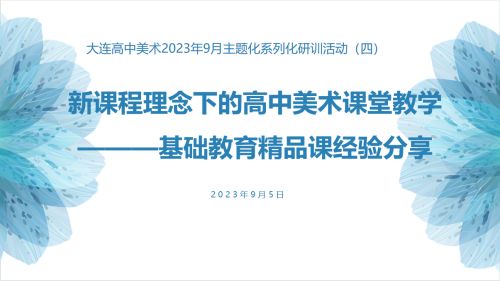 9月5日,大連高中美術(shù)教師迎來“開學(xué)第一課”暨本年度九月主題化系列化研訓(xùn)活動,本次研訓(xùn)邀請大連市第七十七中學(xué)張藝凡老師做“精品課課程建設(shè)與資源開發(fā)”主題講座,全市高中美術(shù)教師參會。