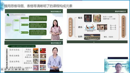 張藝凡老師曾獲得2022年部級基礎(chǔ)教育精品課,參與多節(jié)精品課程資源錄制,對課程建設(shè)與資源開發(fā)有豐富的經(jīng)驗(yàn)與獨(dú)到的見解。講座展播了《敦煌千年》《走進(jìn)博物館》兩節(jié)范例課程,精彩紛呈亮點(diǎn)頻出。并結(jié)合往屆精品課優(yōu)秀課例,從選課方向擬定、課程資源整合、信息技術(shù)助力、錄制技巧點(diǎn)撥等多方面介紹經(jīng)驗(yàn)與心得。講座后與參訓(xùn)教師進(jìn)行互動問答,對老師們在籌備精品課過程中遇到的問題做細(xì)致解答。隨后,劉源老師做補(bǔ)充分享,從精品課的定位準(zhǔn)則;課程內(nèi)容呈現(xiàn)詳略安排;課件圖文設(shè)計風(fēng)格;巧用思維導(dǎo)圖、表格等清晰明了的課程構(gòu)成元素;視頻課程中呈現(xiàn)師生互動形式;精品課課堂的共情體驗(yàn)等幾個方面,談幾點(diǎn)思考與參訓(xùn)教師們探討。并詳細(xì)解析了精品課評選標(biāo)準(zhǔn)和省市文件要求。為今年籌備參加精品課遴選的老師理清思路,規(guī)避問題。