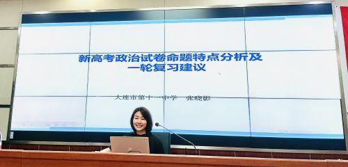 第二項內(nèi)容是大連市第十一中學(xué)張曉影老師做了題為《新高考政治試卷命題特點分析及一輪復(fù)習(xí)建議》的講座。張老師從2022、2023年的遼寧卷入手,輔之以山東卷和北京卷,對比分析了雙新背景下思想政治學(xué)科的試卷特點及命題趨勢,并分享了自己連續(xù)多年教高三而總結(jié)的一輪復(fù)習(xí)備考建議,令老師們受益匪淺。