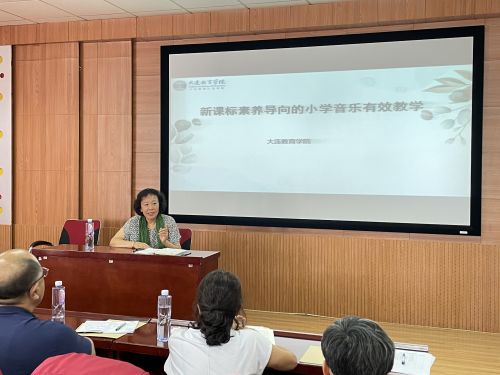 本次活動(dòng)主題為“新課標(biāo)素養(yǎng)導(dǎo)向下的小學(xué)音樂(lè)有效教學(xué)”,由大連教育學(xué)院藝體勞研訓(xùn)中心小學(xué)音樂(lè)研訓(xùn)教師薛金主持。活動(dòng)第一部分,薛金老師結(jié)合“2023年大連市小學(xué)音樂(lè)學(xué)科評(píng)優(yōu)活動(dòng)”,作了題為《素養(yǎng)導(dǎo)向下的小學(xué)音樂(lè)教學(xué)的幾點(diǎn)思考》專(zhuān)題講座,從音樂(lè)學(xué)科本位論、音樂(lè)學(xué)科感性體驗(yàn)論、音樂(lè)學(xué)科的音響屬性以及編創(chuàng)與展示的教學(xué)思考幾個(gè)方面闡述了新課標(biāo)視野下的小學(xué)音樂(lè)課堂教學(xué)的有效策略。