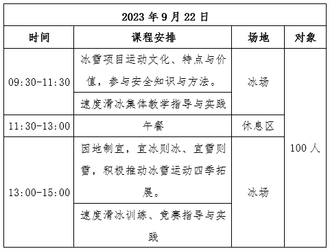 2.參加培訓(xùn)所需的冰刀、手套、襪子及午餐由大會(huì)統(tǒng)一提供,其它如護(hù)肘、護(hù)膝、護(hù)臂等護(hù)具個(gè)人自備或現(xiàn)場租賃(費(fèi)用自理),參訓(xùn)教師有條件也可自帶冰刀;培訓(xùn)統(tǒng)一購買保險(xiǎn),教師參訓(xùn)必須服從指揮,注意安全;培訓(xùn)在冰場進(jìn)行,請參訓(xùn)教師注意保暖。