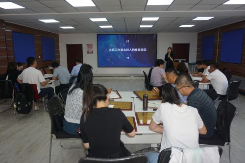本次研修主題聚焦“新課程背景下名師工作室建設(shè)與管理”,以專題引領(lǐng)、經(jīng)驗(yàn)交流、實(shí)踐拓展為主要方式,內(nèi)容設(shè)置為團(tuán)隊(duì)建設(shè)、研修方案解讀、名師工作室建設(shè)方案指導(dǎo)以及授牌儀式四個(gè)模塊。通過(guò)團(tuán)隊(duì)建設(shè)幫助學(xué)員之間建立良好的溝通合作關(guān)系,營(yíng)造積極的學(xué)習(xí)氛圍,增強(qiáng)團(tuán)隊(duì)凝聚力,提升團(tuán)隊(duì)工作效率;通過(guò)研修方案解讀,明晰名師工作室主持人研修的培養(yǎng)目標(biāo)、工作任務(wù)、培養(yǎng)方式和預(yù)期成果等。通過(guò)名師工作室建設(shè)方案指導(dǎo),提升其在新課程背景下主持人的工作室規(guī)劃與運(yùn)行能力。本次研修,還邀請(qǐng)了學(xué)院教師教育辦公室劉金華主任、市教育局干部人事處許黎明副處長(zhǎng)、賈艷莉老師出席了工作室授牌儀式,為19位名師工作室主持人逐一授牌,合影留念。