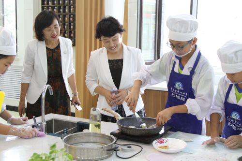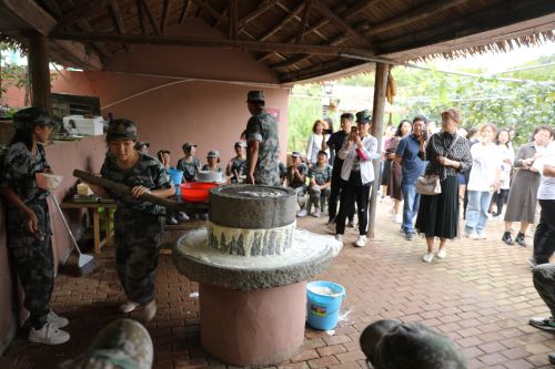 甘井子區(qū)中小學生國防教育中心和學生勞動技能訓練中心是學生的勞動基地,各個學校的學生會定期到這里集中開展勞動教育。在國防教育中心,與會老師饒有興致地觀看學生的花生采摘。在豆腐制作課上,同學們正在賣力地推著石碾,豆?jié){汩汩流出。制作桑葉茶,也是同學們喜歡勞動的項目,大家采集桑葉,進行清洗,然后進行蒸煮殺青,再進行烘炒,揉捻,成型,個個都成了制茶高手。