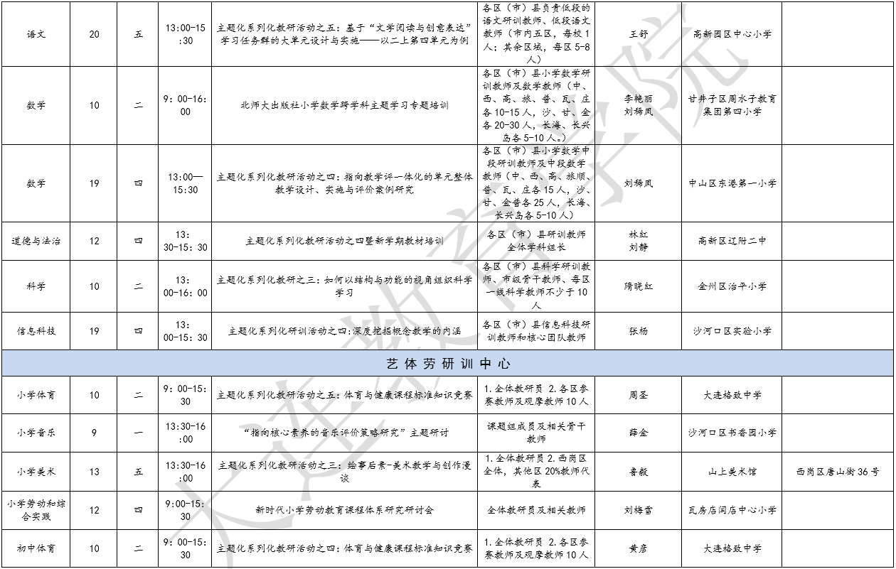 4.藝體勞研訓(xùn)中心10月份教研計(jì)劃