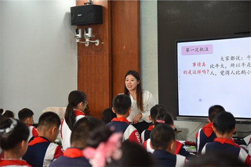 大房身小學(xué)奚爽老師通過四年級《牛和鵝》一課,引導(dǎo)學(xué)生學(xué)習(xí)批注的角度和方法,牽引學(xué)生嘗試運(yùn)用批注的方法閱讀,讓學(xué)生經(jīng)歷由學(xué)習(xí)語文要素到遷移運(yùn)用的過程。南關(guān)嶺小學(xué)張麗娜老師通過二年級《霧在哪里》一課,帶領(lǐng)學(xué)生感知作者豐富的想象力,激發(fā)學(xué)生大膽想象的興趣,借助文中的語言句式幫助學(xué)生表達(dá)自己的想象,使學(xué)生經(jīng)歷了從"文本-畫面-語言表達(dá)"的學(xué)習(xí)過程。