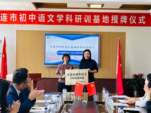 活動(dòng)伊始,在全體參會(huì)教師的見(jiàn)證下,鄧?yán)蠋煛罾蠋煷泶筮B教育學(xué)院為大連經(jīng)濟(jì)技術(shù)開(kāi)發(fā)區(qū)第七中學(xué)授牌。雙方就未來(lái)的合作進(jìn)行深入交流與探討,共同規(guī)劃語(yǔ)文學(xué)科教學(xué)實(shí)踐研究藍(lán)圖。
