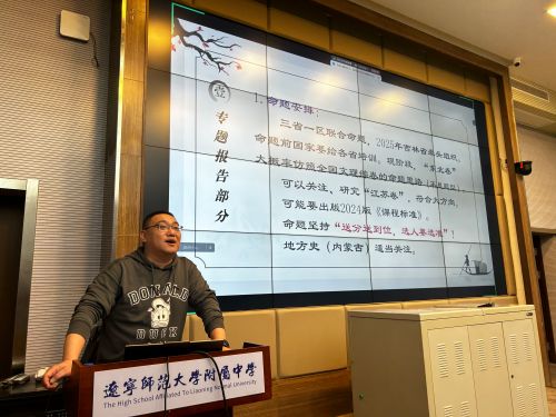在金秋十月的一個(gè)細(xì)雨蒙蒙的午后,遼寧師大附中的校園里彌漫著一種浪漫而又學(xué)術(shù)的氣息,10月14日下午,大連市高三年級歷史學(xué)科的教研活動在這里如期舉行。本學(xué)期教研活動的主題為“指向深度學(xué)習(xí)的教學(xué)評一體化單元整體設(shè)計(jì)”,本次教研側(cè)重研討“教師的智慧與深度學(xué)習(xí)策略的實(shí)施”這一小專題。市歷史教研員崔紅巖主持會議,與老師們共同穿梭在歷史的長河中,共同探索歷史教學(xué)的深度與廣度。