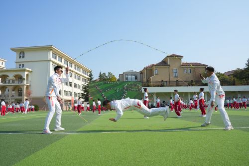 由甘井子區(qū)北華小學(xué)龍家宇、甘井子區(qū)泡崖小學(xué)林振坤、大連市第十九中學(xué)劉文慧、中山區(qū)東港第一小學(xué)譚鐸、北京師范大學(xué)大連普蘭店區(qū)附屬學(xué)校邵迎文、甘井子區(qū)中心小學(xué)孔凡帥、莊河市實(shí)驗(yàn)小學(xué)崔國(guó)強(qiáng)、大連海事大學(xué)附屬學(xué)校王鐸、西崗區(qū)新石路小學(xué)韓鵬等9名教師組成的花樣跳繩隊(duì),在開(kāi)幕式上進(jìn)行了展演,雙人車(chē)輪跳、多人交互繩、胯下跳、轉(zhuǎn)身跳、速度跳,力量與美感兼具的動(dòng)作贏得掌聲陣陣。精彩的表演,顯示出大連在教師技能培訓(xùn)方面的突出成果。
