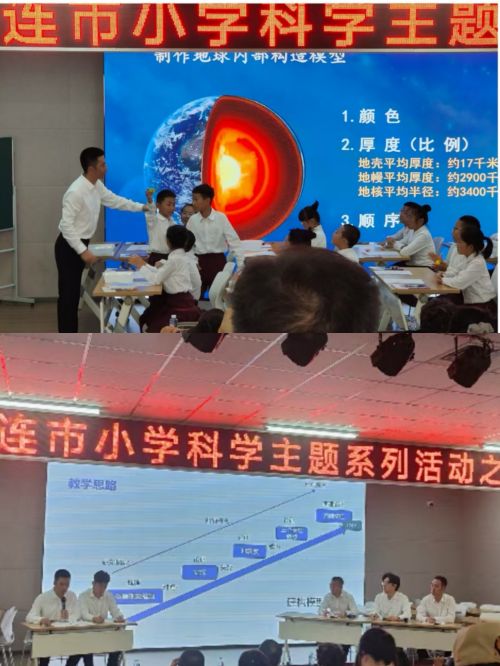 金普新區(qū)科學(xué)工作坊主持人王巖老師詳細(xì)闡述了金普新區(qū)小學(xué)科學(xué)團(tuán)隊(duì)在教研工作方面的創(chuàng)新舉措。緊接著,金童小學(xué)的趙冬冬老師現(xiàn)場(chǎng)展示了一節(jié)五年級(jí)科學(xué)課——《地球的內(nèi)部》。趙老師通過設(shè)計(jì)層層遞進(jìn)的問題鏈,引導(dǎo)學(xué)生逐步揭開地球內(nèi)部的神秘面紗,有效提升了學(xué)生的邏輯推理能力,推動(dòng)了深度探究的順利進(jìn)行。隨后,金普新區(qū)馬長(zhǎng)森老師攜其四位徒弟,圍繞科學(xué)論證的相關(guān)內(nèi)容進(jìn)行了深入探討,充分展現(xiàn)了團(tuán)隊(duì)合作的智慧與力量。金普新區(qū)小學(xué)科學(xué)教研員韓春蓉老師則帶來了《小學(xué)科學(xué)推理論證教學(xué)的理解與實(shí)踐》的名師引領(lǐng)講座。韓老師與大家分析推理論證的內(nèi)涵,基于新課標(biāo)理解的科學(xué)論證,并引用課例交流了推理論證在教學(xué)中的策略。