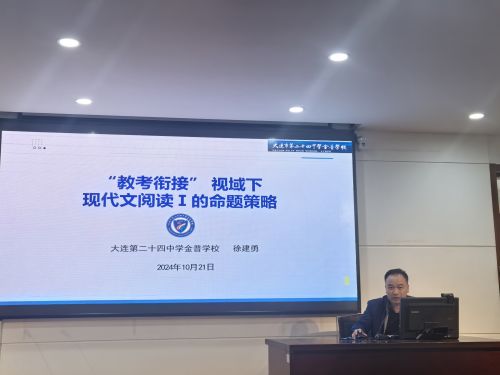 10月21日下午,大連市高二語文“高中語文命題策略”主題教研活動在大連市第八中學(xué)舉行。大連教育學(xué)院高中研訓(xùn)中心語文教研員鄭淑清主持活動,全市高二近百名語文教師參加現(xiàn)場活動,更多縣域教師借助學(xué)院搭建的小鵝通服務(wù)平臺進行了線上觀摩。