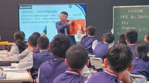 文谷高中張寶林老師上了《共點力平衡》一課,圍繞“知道什么是平衡狀態(tài),掌握共點力的概念及平衡條件”“會利用合成法或分解法分析共點力平衡問題”的教學目標,列舉實例,進行演示和學生分組實驗,通過師生互動和合作探究,使抽象的物理概念變得生動形象,培養(yǎng)學生的科學思維和解決問題的能力,充分調(diào)動學生的求知欲,讓學生感受到物理學的應用價值,課堂反饋效果很好。