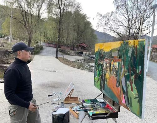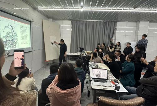 培訓(xùn)中,靴子溝的自然風(fēng)光成為了教師們創(chuàng)作的靈感源泉。他們漫步在田野間,感受著大自然的鬼斧神工,用畫筆記錄下深秋的動人美景。同時,培訓(xùn)班還邀請了多位專家、教授和知名藝術(shù)家授課,石峰教授講解《速寫與寫生》、張濱教授講解《美育教育中的當(dāng)代藝術(shù)》、常慶利教授講解《淺談中國畫創(chuàng)作中的意與趣》、張?zhí)煲唤淌谥v解《中國壁畫研究》、陳豪老師講授《淺談版畫藏書票》、廖運(yùn)生老師講授《絲網(wǎng)藝術(shù)表達(dá)的創(chuàng)作與實(shí)踐》。課余時間,謝天老師、郝傳松老師分別帶領(lǐng)參訓(xùn)教師體驗(yàn)扎染與剪紙藝術(shù)實(shí)踐。通過理論講解與實(shí)踐操作相結(jié)合的方式,幫助教師們提升專業(yè)技藝、拓寬藝術(shù)視野。
