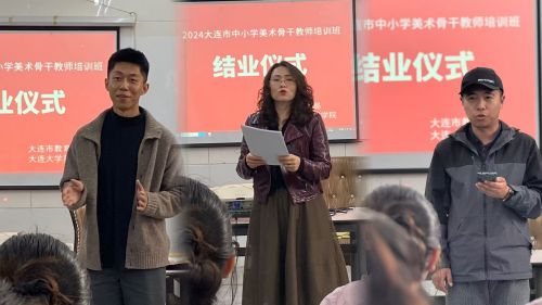 培訓(xùn)班結(jié)業(yè)畫展和結(jié)業(yè)儀式于25日上午舉行,由大連市高中美術(shù)教研員劉源老師主持。首先邀請培訓(xùn)專家點(diǎn)評風(fēng)景寫生作品,后頒發(fā)結(jié)業(yè)證書。請大連市錦泉小學(xué)袁為健老師、大連市第二十四中學(xué)李鑫老師、莊河市第十六中學(xué)畢冬梅老師代表參訓(xùn)教師交流培訓(xùn)收獲和心得。他們表示:這次培訓(xùn)為老師們提供了一個難得的學(xué)習(xí)和交流機(jī)會,學(xué)到了很多易于拓展課堂教學(xué)的實(shí)用的藝術(shù)實(shí)踐知識和技巧。各位專家在所研究領(lǐng)域的成果激勵和鼓舞老師們不斷提升專業(yè)素養(yǎng)。日后,老師們將始終秉持對藝術(shù)創(chuàng)作的熱愛與堅(jiān)持,不忘教育者初心,將所學(xué)的知識和技能應(yīng)用到教學(xué)中,在工作中能堅(jiān)持不懈的探索新知、提高業(yè)務(wù)能力,深耕課堂陣地,在落實(shí)新課程新教材的課堂教學(xué)改革之路上,不忘初心堅(jiān)守遠(yuǎn)航。