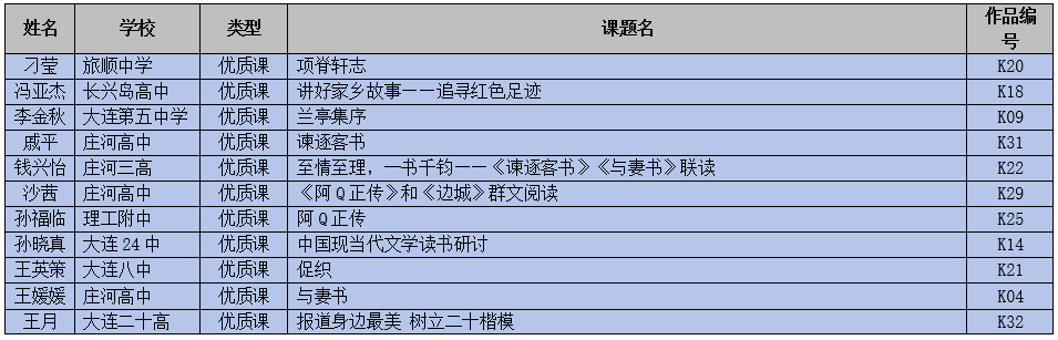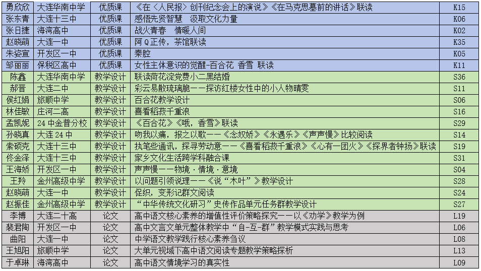 根據(jù)遼寧教育學(xué)院2024年9月30日的《關(guān)于組織開展遼寧省普通高中優(yōu)秀課、優(yōu)秀論文及教學(xué)設(shè)計(jì)評(píng)比活動(dòng)的通知》要求,本著公正公平的原則,我們組織了大連地區(qū)推薦評(píng)選活動(dòng),經(jīng)過報(bào)名、作品上傳及評(píng)選,擬推薦以下作品參加省優(yōu)秀課、優(yōu)秀論文及教學(xué)設(shè)計(jì)評(píng)比,特公示名單如下: