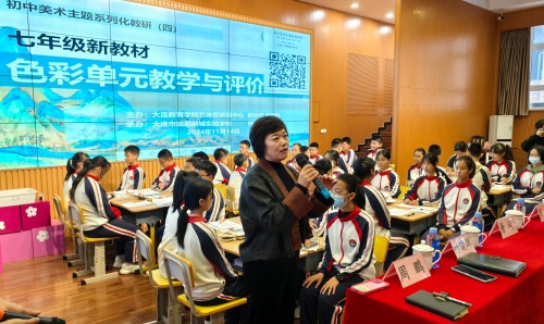 為促進(jìn)新課標(biāo)下的教學(xué)提升,探索新教材落地實(shí)施策略,11月14日下午,大連市初中美術(shù)主題系列化教研(四)—— 七年級(jí)新教材色彩單元教學(xué)與評(píng)價(jià)展示活動(dòng)在旅順新城實(shí)驗(yàn)學(xué)校舉行。大連教育學(xué)院藝體勞研訓(xùn)中心、旅順口區(qū)教育局、旅順口區(qū)教師進(jìn)修學(xué)校、旅順新城實(shí)驗(yàn)學(xué)校相關(guān)領(lǐng)導(dǎo)及各縣市區(qū)初中美術(shù)教研員和美術(shù)教師共同參加觀摩研討活動(dòng)。