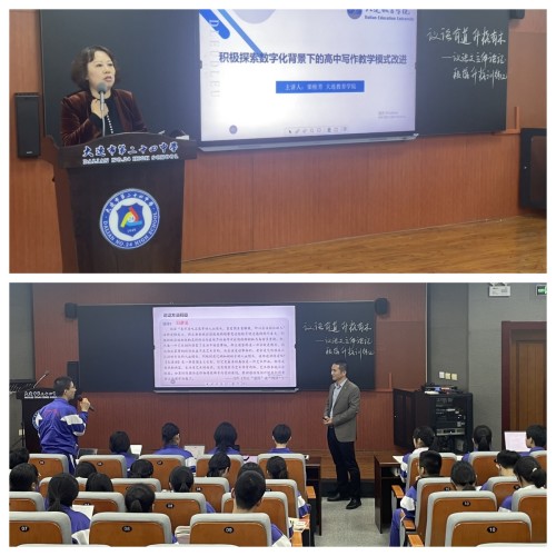 本年度教研工作交流展示活動以“數(shù)字賦能·學(xué)段貫通·市區(qū)校協(xié)同”為主題,通過主旨報告、主題教研、主題工作坊三個單元開展。在主旨報告單元,邀請華師大課程與教學(xué)研究所專家和人民教育出版社中學(xué)語文編輯室資深編輯、編審分別作《以教研創(chuàng)新深化基礎(chǔ)教育課程改革》和《深入理解“穩(wěn)中求進”,整體把握新編修教材》兩場主旨報告,引領(lǐng)區(qū)域教研同仁們明確新課標(biāo)素養(yǎng)導(dǎo)向下教研創(chuàng)新之道及語文新編修教材統(tǒng)整之策。在主題教研和主題工作坊單元,基于大連市語文學(xué)科教研團隊多年來對語文統(tǒng)編教材的深度探索與實踐,分設(shè)大連市第二十四中學(xué)、大連經(jīng)濟技術(shù)開發(fā)區(qū)第七中學(xué)教育集團、大連市中山區(qū)中心小學(xué)三個會場,集聚高中、初中、小學(xué)三個學(xué)段的市區(qū)校三級優(yōu)勢語文教研力量,圍繞“數(shù)字化賦能高初小語文寫作教學(xué)”,通過課例觀摩、課例研討、經(jīng)驗分享、微講座等形式,全方位展示數(shù)字化賦能下學(xué)段貫通的一體化語文寫作教學(xué)的優(yōu)秀市區(qū)校協(xié)同教研經(jīng)驗成果。