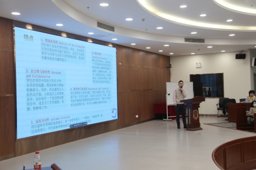活動(dòng)第二部分是題為《Project理論的教學(xué)與實(shí)踐》的講座。講座圍繞項(xiàng)目式學(xué)習(xí)的理論基礎(chǔ)、開展要素、實(shí)施過程等方面進(jìn)行了深入淺出的講解,并結(jié)合教學(xué)實(shí)踐經(jīng)驗(yàn),針對項(xiàng)目式學(xué)習(xí)中常見的問題,從教考銜接等角度,通過生動(dòng)的教學(xué)設(shè)計(jì)案例,闡釋了項(xiàng)目式學(xué)習(xí)的實(shí)踐路徑。為與會(huì)教師提供了有效的復(fù)習(xí)策略和教學(xué)參考。