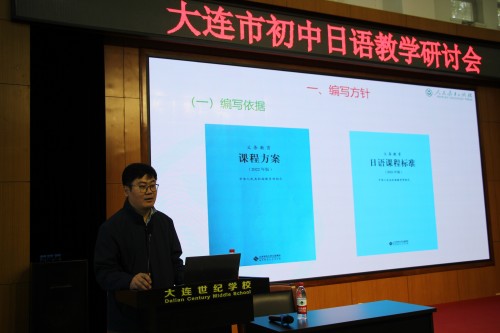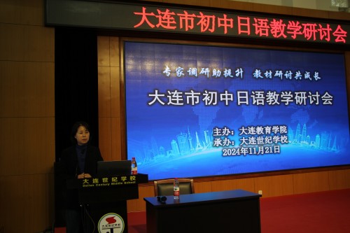 在大連世紀學校召開了以“專家調(diào)研助提升,教材研討共成長”為主題的大連市初中日語教學研討會。研討會包括專家講座、新版教材課例展示、新版教材教學設計展示、教師座談、學生訪談等內(nèi)容。人民教育出版社日語編輯室副主任張金龍作了《新版<義務教育教科書日語七年級全一冊>及配套資源介紹》為主題的專題講座。大連南金實驗學校結合新版教材編寫理念,與大連世紀學校的學生共同為參會老師展示了一堂生動活潑、寓教于樂的課堂教學。大連市第五十一中學分享了新版教材教學設計。會后,與會專家圍繞新版教材的內(nèi)容特點、難度容量、版面設計等與全體日語老師及部分初一學生展開座談。
