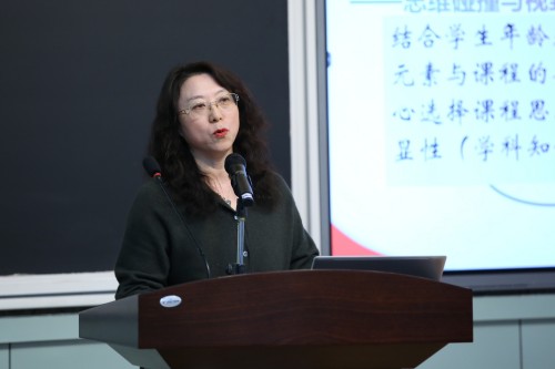 遼寧師范大學(xué)馬克思主義學(xué)院教授馬寶娟從課程思政的教學(xué)設(shè)計(jì)、教學(xué)實(shí)施、教學(xué)評(píng)價(jià)等多個(gè)維度對(duì)各學(xué)段的示范課進(jìn)行了分析和評(píng)價(jià)。她肯定了教師們?cè)谡n程思政教學(xué)中的實(shí)踐與創(chuàng)新,又基于特色經(jīng)驗(yàn)與共性問(wèn)題生成專門培訓(xùn)主題,為參會(huì)者指明了各學(xué)段課程思政教學(xué)變革與創(chuàng)新的實(shí)踐方向。