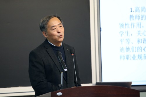 大連大學(xué)馬克思主義學(xué)院副教授王文豐以“課程思政中思政元素的發(fā)掘與融入”為題作主題報(bào)告。報(bào)告圍繞課程思政的內(nèi)涵與意義、課程思政的基礎(chǔ)與條件、課程思政教學(xué)設(shè)計(jì)與實(shí)施策略等內(nèi)容,理性闡述了學(xué)科課程中思政元素的發(fā)掘與融入要點(diǎn),為教師們提供了系統(tǒng)、深入的課程思政理論引領(lǐng)與實(shí)踐指導(dǎo)。