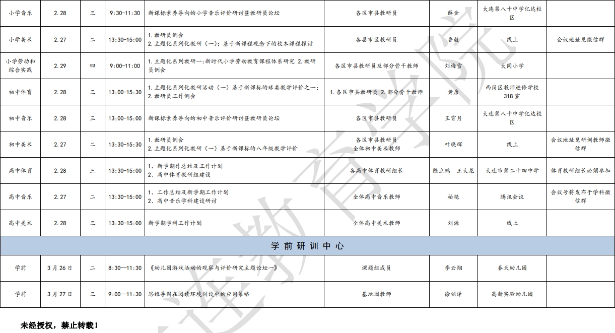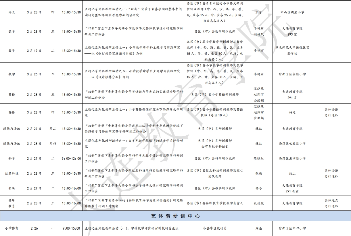 4.藝體勞研訓(xùn)中心2024年2月教研活動(dòng)計(jì)劃表