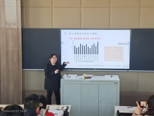 第三環(huán)節(jié),劉香梅老師對本次教研活動進行了補充和總結(jié)。首先,劉老師通過本次雙基考試的總結(jié)提出了高考風(fēng)向標(biāo),即加強對關(guān)鍵能力、學(xué)科素養(yǎng)和思維品質(zhì)的考查,增強試題的應(yīng)用性、創(chuàng)新性、開放性、靈活性以及實現(xiàn)立德樹人,德智體美勞全面發(fā)展。隨后劉老師也針對二輪復(fù)習(xí)提出建議:開展專題復(fù)習(xí),橫縱貫通,加固知識體系;鞏固一輪復(fù)習(xí)成果,筑牢知識體系;關(guān)注學(xué)生解決問題模式的養(yǎng)成;高度重視生物實驗、探究等活動等。為全體教師進一步指明了教學(xué)方向。