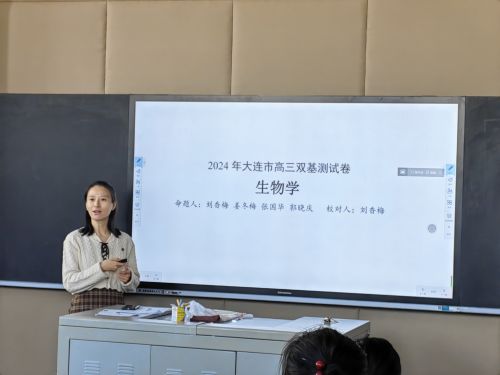 第一環(huán)節(jié),由大連育明高級中學(xué)的郭曉慶老師進行了大連市高三雙基考試試卷分析。郭老師首先介紹了試題的命制思路。隨后對試卷考查的知識、能力和核心素養(yǎng)點進行了詳細(xì)的分析,總結(jié)了試卷呈現(xiàn)的特點,即對高考評價體系內(nèi)容要求中的必備知識、關(guān)鍵能力、核心素養(yǎng)和核心價值進行了綜合考查。接下來郭老師對閱卷數(shù)據(jù)和學(xué)生的答題情況和進行了深入的分析。通過案例分析,指出了學(xué)生普遍存在的問題并提出了相應(yīng)的教學(xué)建議,對接下來高考復(fù)習(xí)的教學(xué)方向和備戰(zhàn)高考起到了很好的導(dǎo)向作用。