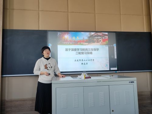 第二環(huán)節(jié),大連二十四高級中學(xué)韓志萍老師進行了“基于深度學(xué)習(xí)的高三生物學(xué)”專題講座。首先韓老師對深度學(xué)習(xí)進行了詳細(xì)的解讀并總結(jié)了近三年我省新高考生物試題命制的特點。隨后從做好兩回顧,即回顧課本回顧真題;提升解題能力,即專題講座、精選精煉及適度自醒;做好心理疏導(dǎo)即消除焦慮、自信助你三個方面為大家詳細(xì)介紹了二輪復(fù)習(xí)的相關(guān)策略。講座內(nèi)容中呈現(xiàn)了許多豐富的教學(xué)案例和學(xué)習(xí)素材,給全體老師做了一次既有理論高度又有實踐意義的教學(xué)引領(lǐng)。