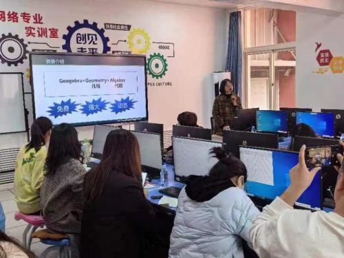 教育數(shù)字化轉型是教育改革的必然趨勢。本次培訓結合2023年調研需求,針對大多數(shù)教師在數(shù)學專用技術掌握運用上的缺失展開,引領教師學會使用GeoGebra軟件,將數(shù)字技術融入日常教學中,實現(xiàn)教學創(chuàng)新,提高教學效果。參加教研的教師認真學習并實踐操作,相互討論,促進了數(shù)字化教學能力的提升。