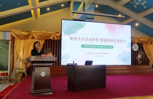 為深入貫徹落實(shí)《幼兒園保育教育質(zhì)量評估指南》精神,依據(jù)《大連市幼兒園半日活動評優(yōu)方案》,2023年,學(xué)前研訓(xùn)中心面向全市幼兒園開展半日活動評優(yōu)工作。為了進(jìn)一步總結(jié)半日活動組織實(shí)施經(jīng)驗,充分發(fā)揮以評促建、以評促研、以評促學(xué)功能的最大化,促進(jìn)我市幼兒園保育教育質(zhì)量整體均衡發(fā)展和穩(wěn)步提升。2024年3月22日下午,學(xué)前研訓(xùn)中心在大連市實(shí)驗幼兒園組織召開大連市幼兒園半日活動評優(yōu)工作總結(jié)暨培訓(xùn)會,全市各縣區(qū)進(jìn)修學(xué)校幼教部研訓(xùn)教師、全體參評教師和指導(dǎo)教師200余人參加了會議。