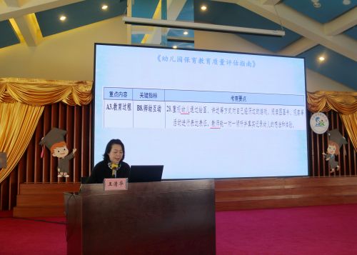 會議共有兩項議程,首先,學(xué)前研訓(xùn)中心邵日芳、朱璟,以及區(qū)教師進(jìn)修學(xué)前研訓(xùn)部負(fù)責(zé)人尹曉杰、宋軍、邢囡、王清華,共6位幼兒園半日活動評優(yōu)過程中的評審專家,分別從教育環(huán)境、生活活動、游戲活動與觀察、戶外活動、表征表達(dá)、課程管理與集體教學(xué)6個專題角度出發(fā),為全體參會教師開展實(shí)踐問題導(dǎo)向下的幼兒園半日活動組織與實(shí)施指導(dǎo)系列培訓(xùn)。通過培訓(xùn),引領(lǐng)縣區(qū)和幼兒園結(jié)合各區(qū)和各園在半日活動評優(yōu)中的實(shí)際問題,進(jìn)一步明晰《評估指南》倡導(dǎo)的方向和立場。其次,受部門委托,學(xué)前中心徐銘澤老師從基本情況、主要特點(diǎn)、存在問題及解決策略四方面總結(jié)了本次評優(yōu)工作情況。