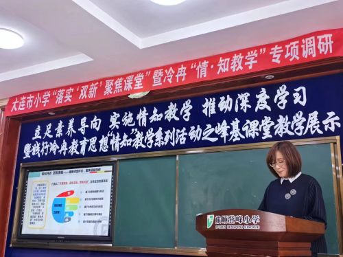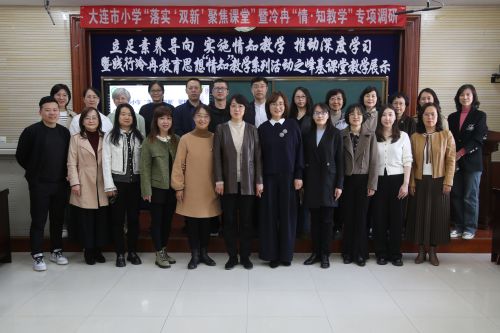 為全面掌握大連市小學(xué)冷冉“情.知”教學(xué)研究的基本狀況,挖掘我市小學(xué)在該領(lǐng)域研究方面的典型經(jīng)驗(yàn),探尋落實(shí)“雙新”理念與冷冉教育思想深度融合的有效路徑,4月18日下午,大連教育學(xué)院小學(xué)研訓(xùn)中心各學(xué)科研訓(xùn)教師在中心主任于業(yè)宏的帶領(lǐng)下,赴大連旅順登峰小學(xué)繼續(xù)開展“冷冉‘情.知教學(xué)’”專項(xiàng)調(diào)研。旅順口區(qū)教育局副局長(zhǎng)曲永忱、旅順口區(qū)教師進(jìn)修學(xué)校校長(zhǎng)陳麗軒及旅順口區(qū)教師進(jìn)修學(xué)校各學(xué)科教研員共同參與了此次專項(xiàng)調(diào)研。