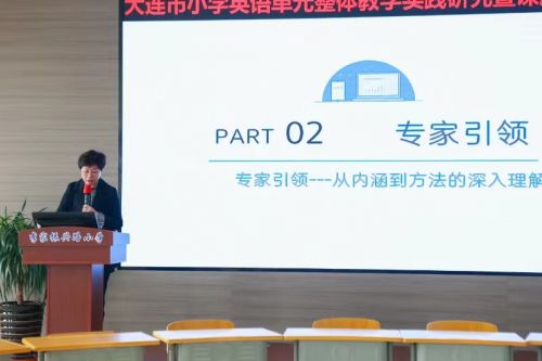 活動(dòng)由市小學(xué)英語(yǔ)研訓(xùn)教師趙翔宇主持。李家振興路小學(xué)李珊主任、范桂瑜老師和五年級(jí)的孩子們現(xiàn)場(chǎng)做基于單元整體教學(xué)的精彩的課例展示。學(xué)校英語(yǔ)團(tuán)隊(duì)做課例研討,主要從主題的確定、單元整體目標(biāo)的制定、課堂教學(xué)的設(shè)計(jì)和實(shí)施以及單元作業(yè)的設(shè)計(jì)幾方面進(jìn)行了深入的交流。甘井子區(qū)高國(guó)偉老師做區(qū)域的教研分享。