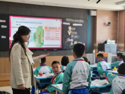 調(diào)研活動首先由華樂校區(qū)副校長翟競強(qiáng)做匯報(bào)展示。匯報(bào)指出,東港小學(xué)教育集團(tuán)在校長王艷的帶領(lǐng)下,秉承東港“行知”教育理念,堅(jiān)持真問題,真情境,做中學(xué),實(shí)現(xiàn)學(xué)習(xí)方式的變革,落實(shí)核心素養(yǎng),構(gòu)建學(xué)校高質(zhì)量的育人生態(tài)。集團(tuán)提煉出“問題驅(qū)動情·知互動”的主題,通過團(tuán)隊(duì)開展冷冉教育思想研究實(shí)踐的經(jīng)驗(yàn)。用問題驅(qū)動學(xué)生思維的生長,讓思維的變化產(chǎn)生的情感,從而在教學(xué)中實(shí)現(xiàn)學(xué)生情知共長的教學(xué)目標(biāo)。在冷冉教育思想研究過程中,以課題研究為抓手,以教學(xué)實(shí)踐為依托,形成符合校情的情知教學(xué)模式,提升學(xué)生的素養(yǎng)。2023年10月,在外研社,大連市教育局,中山區(qū)委區(qū)政府,大連教育學(xué)院的大力支持下,全國首個(gè)中小學(xué)外語智慧項(xiàng)目實(shí)踐基地在東港小學(xué)教育集團(tuán)掛牌,標(biāo)志著東港小學(xué)教育集團(tuán)的外語課堂的數(shù)字化轉(zhuǎn)型已經(jīng)開啟。2024年4月,智慧項(xiàng)目推進(jìn)會在東港小學(xué)教育集團(tuán)召開,市區(qū)校三級聯(lián)動,開辟新賽道,助力新發(fā)展。活動過程中,各學(xué)科研訓(xùn)教師走進(jìn)課堂觀摩,課后與學(xué)科教師進(jìn)行了交流指導(dǎo),并查閱了相關(guān)過程性材料。