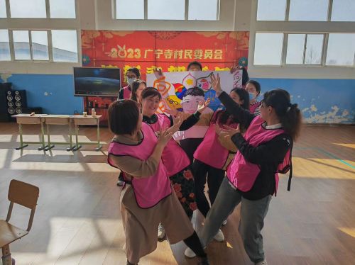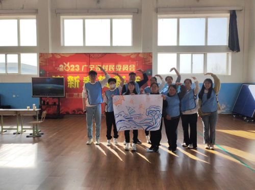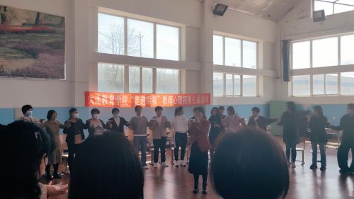 在“花兒朵朵開”游戲后,老師們組成了五個隊伍:向陽而生,逐光前行的“向陽隊”。向陽隊的老師們就像太陽一樣積極樂觀的面對工作和生活,像太陽一樣不但自己發(fā)光,還能給身邊人帶來光明和溫暖。點燃星火,超越夢想的“星火小隊”,集結(jié)了各學(xué)科的教師,隊旗中的圖案象征著“五育并舉”和“五育融合”的教育內(nèi)涵,也滿含著對學(xué)生德智體美勞全面發(fā)展的期待。成就未來的“乘風(fēng)破浪”小隊,不畏懼時代的變化與挑戰(zhàn),不改教育的初心,并且也能一路勇往直前,乘風(fēng)破浪。全心全意,大美齊美的“十全十美”小隊,每位成員都分享了自己對教育、對人生、對幸福的理解,小組內(nèi)王國章老師的一首《春風(fēng)十萬里》唱美人間四月天,把幸福感、獲得感隨著演唱傳遞到每一位老師的耳畔與心中。完美演繹諧音梗的“什么都隊”小組,他們的口號是“隊、堆、對、兌,什么都隊”。“隊”代表一個團(tuán)隊,正所謂“眾人拾柴火焰高”、“人心齊,泰山移”,無不說明團(tuán)隊的力量;“對”代表了我們作為教師要明辨是非,堅持教育的初心;“堆”代表了組內(nèi)十位老師堆砌了自己夢想承托了學(xué)生的希望;“兌”代表了在未來的教育路上我們用自己的力量在團(tuán)隊的合作下兌現(xiàn)孩子們的夢想也是兌現(xiàn)我們自己的夢想。