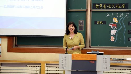 為貫徹落實《義務(wù)教育語文課程標準(2022年版)》學(xué)習(xí)任務(wù)群課程理念,4月26日,大連市小學(xué)低段語文學(xué)科“基于思辨性學(xué)習(xí)任務(wù)群‘智慧看法大碰撞’大單元設(shè)計與實施——以二下第五單元為例”主題教研活動在大連市沙河口區(qū)實驗小學(xué)成功開展。本次活動由大連教育學(xué)院小學(xué)研訓(xùn)中心語文教研員王舒老師主持,沙河口區(qū)實驗小學(xué)校承辦,采用線上線下同步進行。本次教研活動線下各區(qū)域教研員及老師代表200余人參加,線上共計470多人次同步觀看。