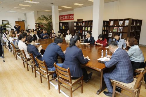 講座后進行了熱烈地現(xiàn)場交流互動,為教職工提供了可鑒易行的閱讀指導(dǎo)。交流會還宣讀了“耕讀傳家·詩書繼世·共享書香”圖書漂流活動倡議書。